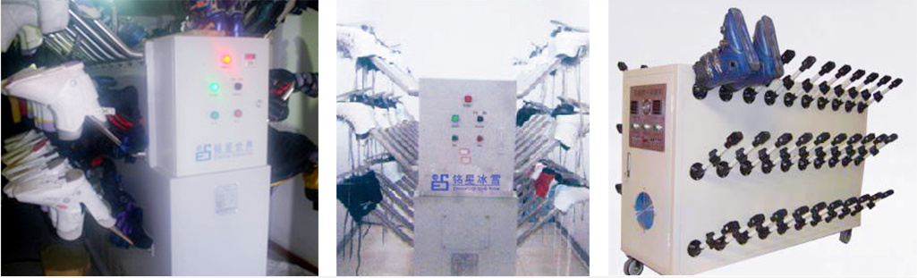 Skate/ski boot dryer is designed to dry skates and ski boots at ice rinks and ski resorts. ES’s skate & ski boot dryer is fitted with an advanced PTC ceramic heater to increase efficiency of conversion of electricity to heat, and the heated air blowing function is optically controlled with each air outlet being controlled separately so that the heater will be activated only when a pair of skates or ski boots is placed on it, thus significantly reducing energy consumption. This dryer can sanitize skates and ski boots with ozone in addition to drying, deodorizing and perfuming them. Made of stainless steel, the entire product is attractive, easy to operate and mobile with 4 wheels.