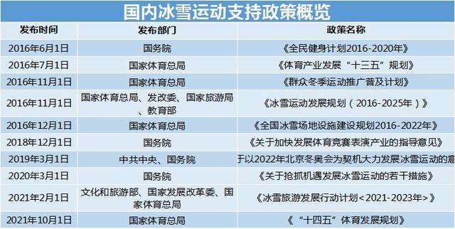 对冰雪业务而言,一方面,近两年国家频频出台政策支持冰雪产业的发展。